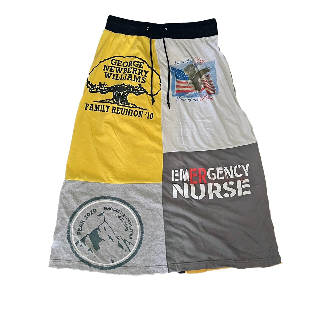 ユーズドTシャツを使ってパッチワークしてスカートにリメイク。