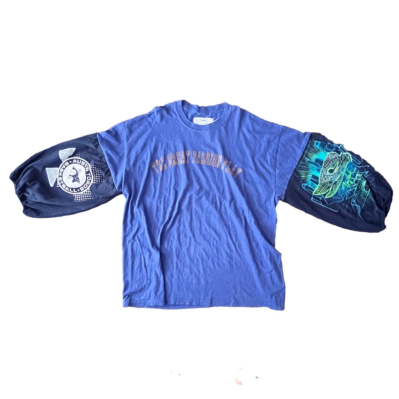 ユーズドのTシャツにプリントのバルーン袖をドッキング。