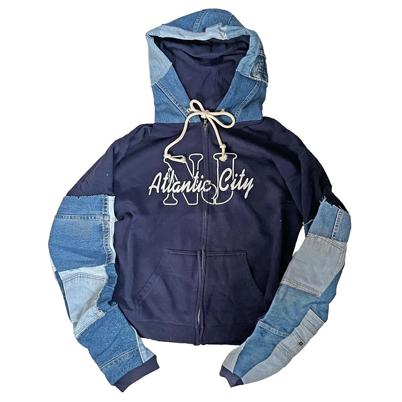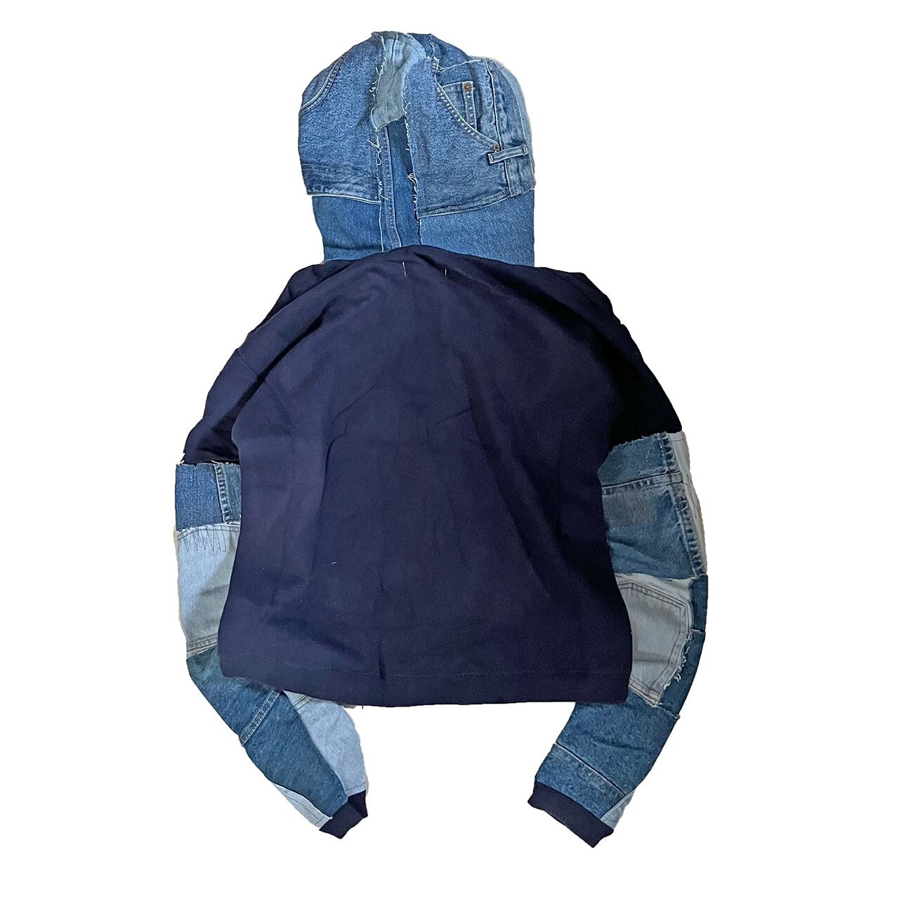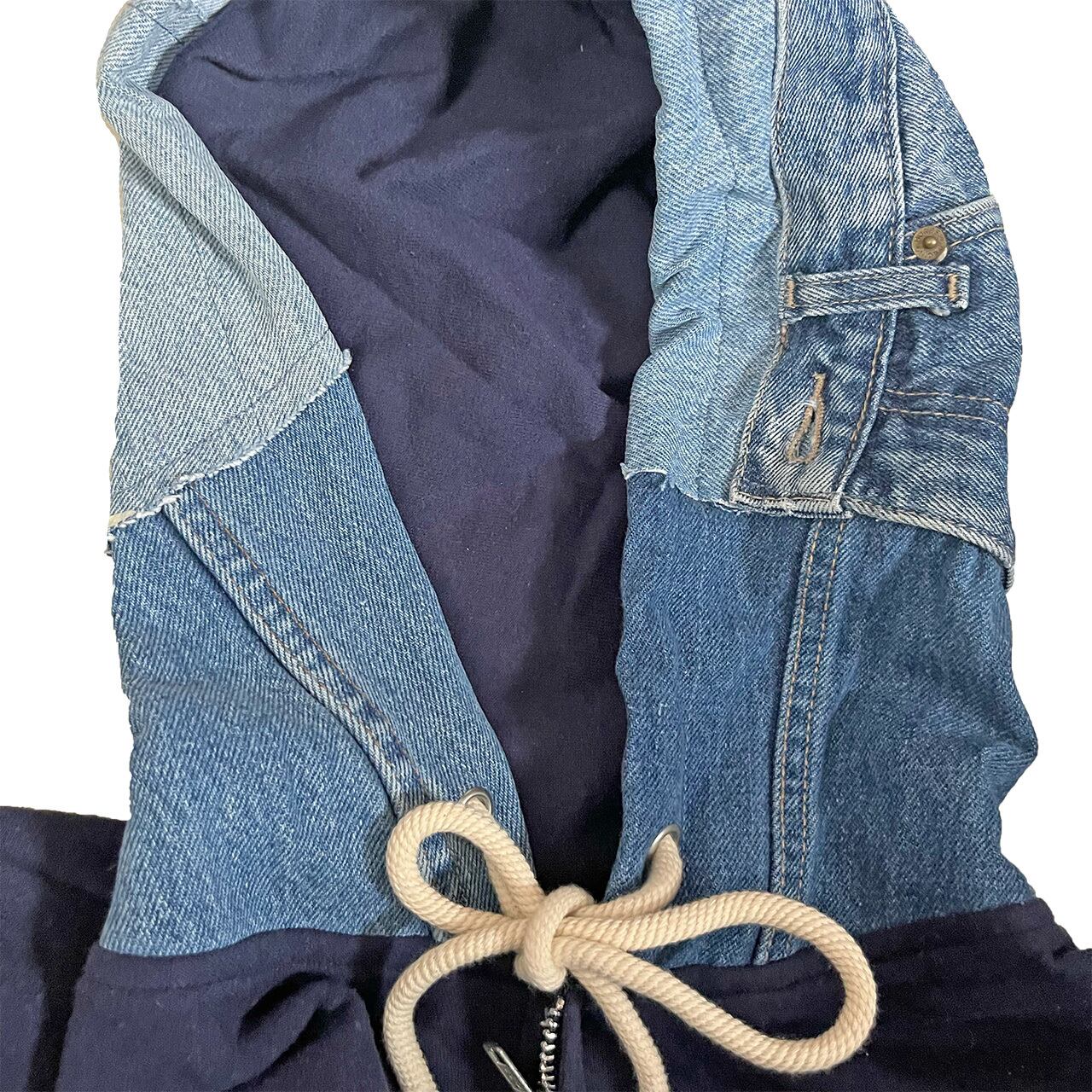 リメイク デニム パッチワーク 切替 フルZIP パーカーR-2008A ①(男女兼用)エコ サステナビリティ ヴィンテージ 再構築 一点物