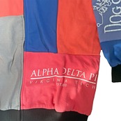 複数の厚手スウェットを使いパッチワーク。ゆったりたっぷりのシルエットで