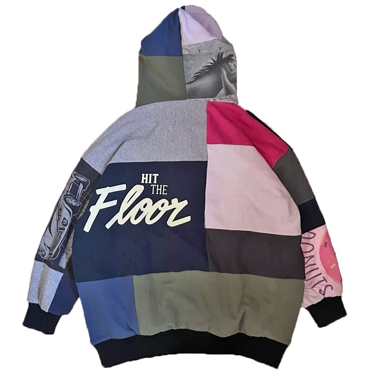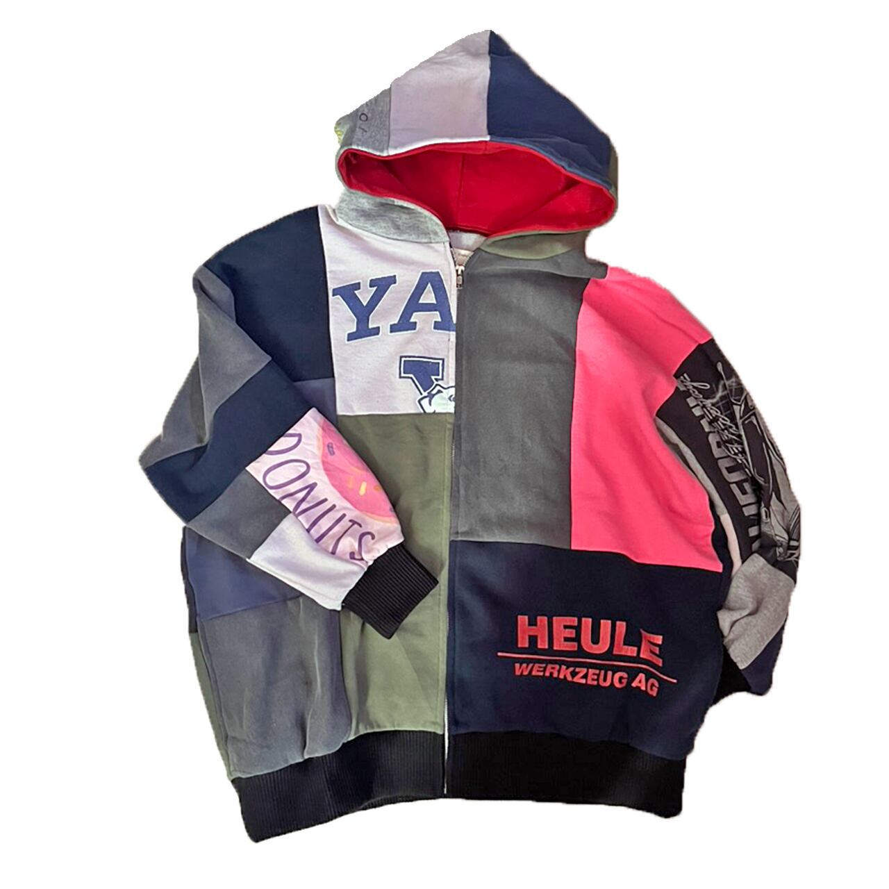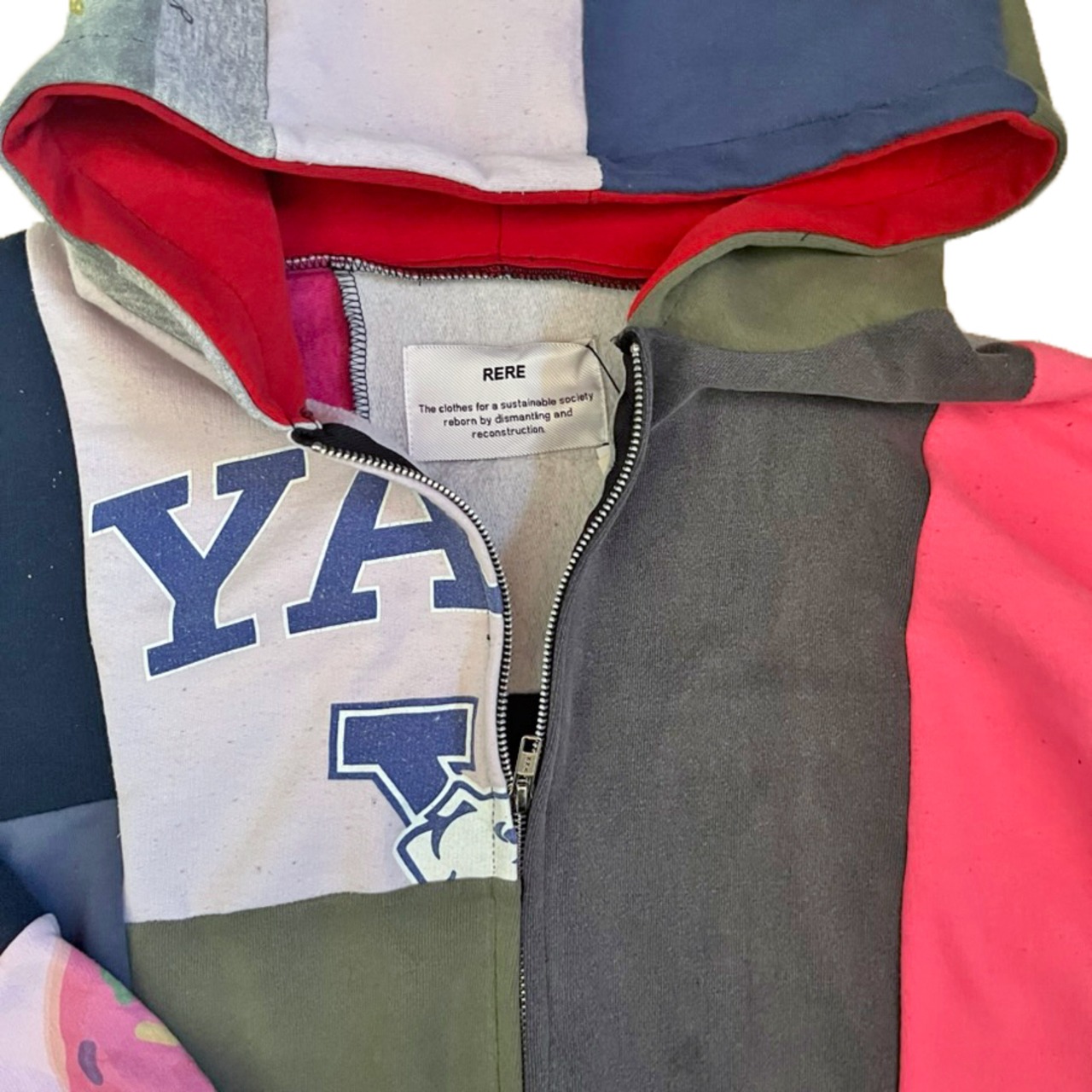 リメイクパッチワークZIPパーカー R-2112 D① (男女兼用)アップサイクル サステナビリティ ヴィンテージ 再構築 一点物