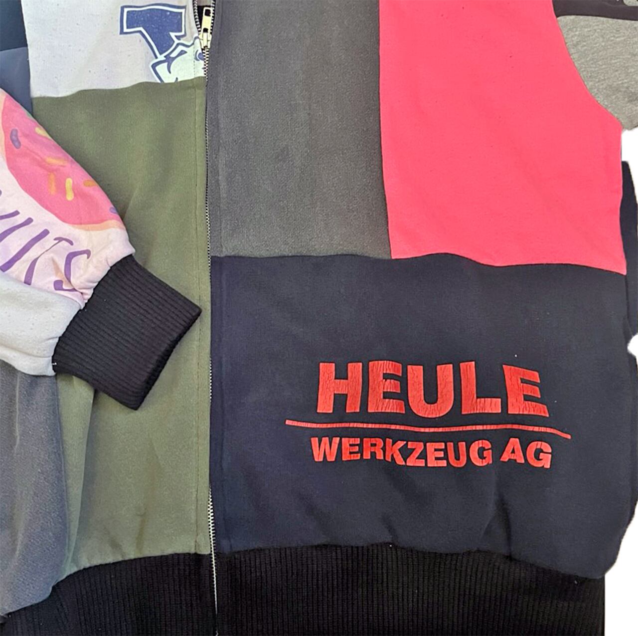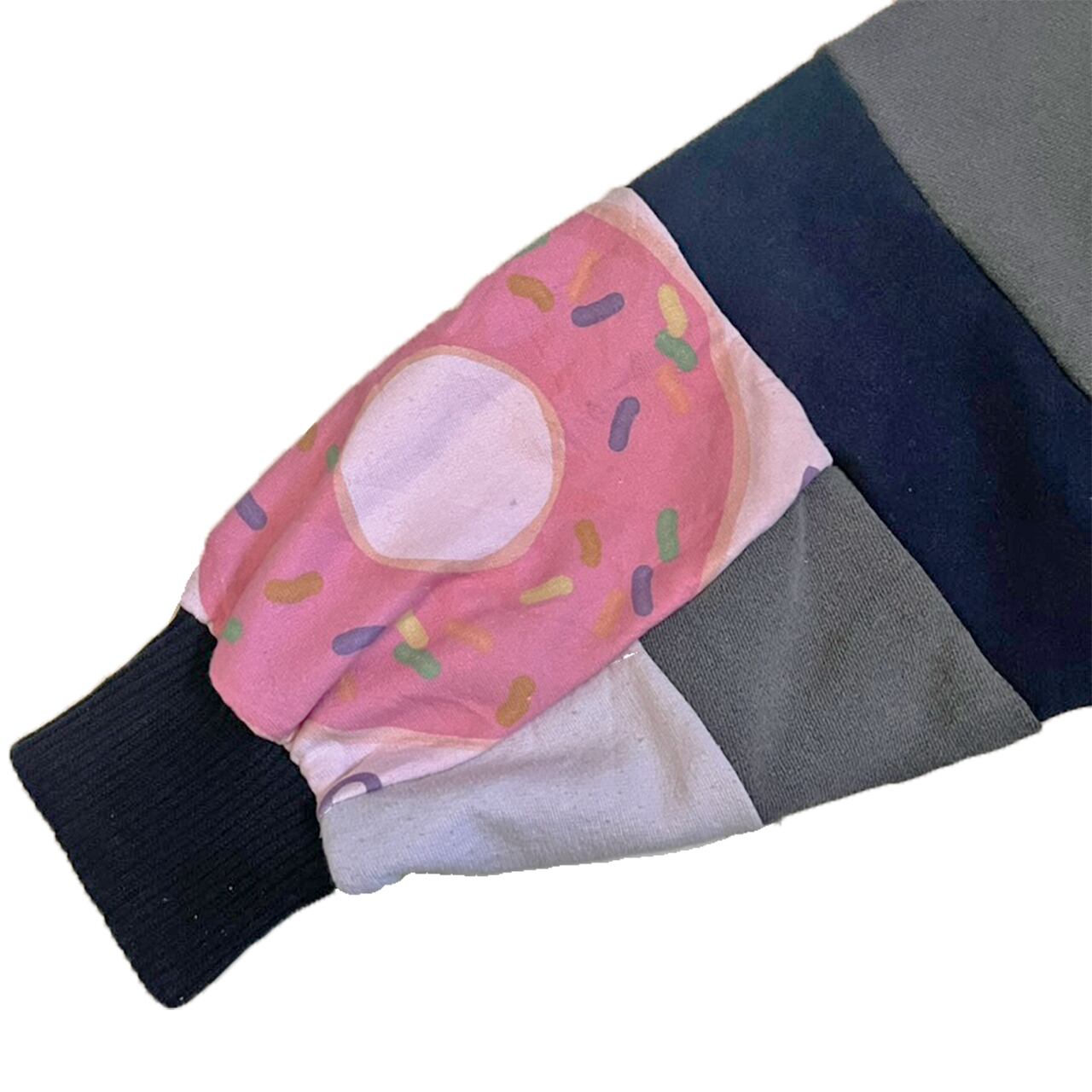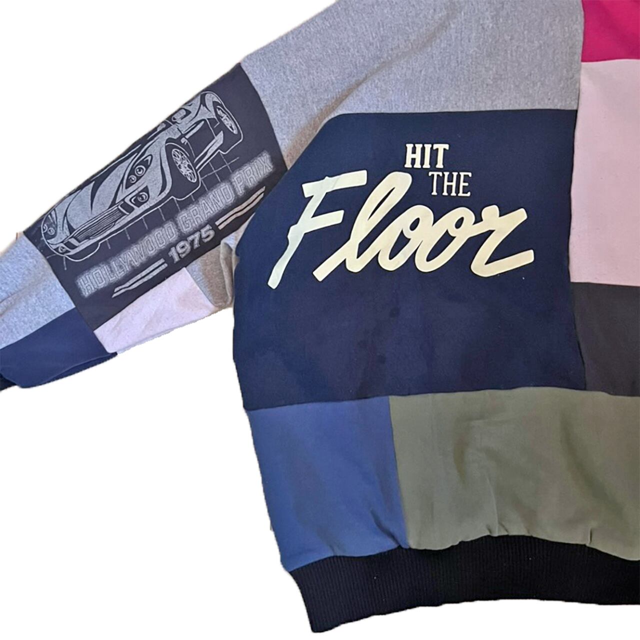 複数の厚手スウェットを使いパッチワーク。ゆったりたっぷりのシルエットで