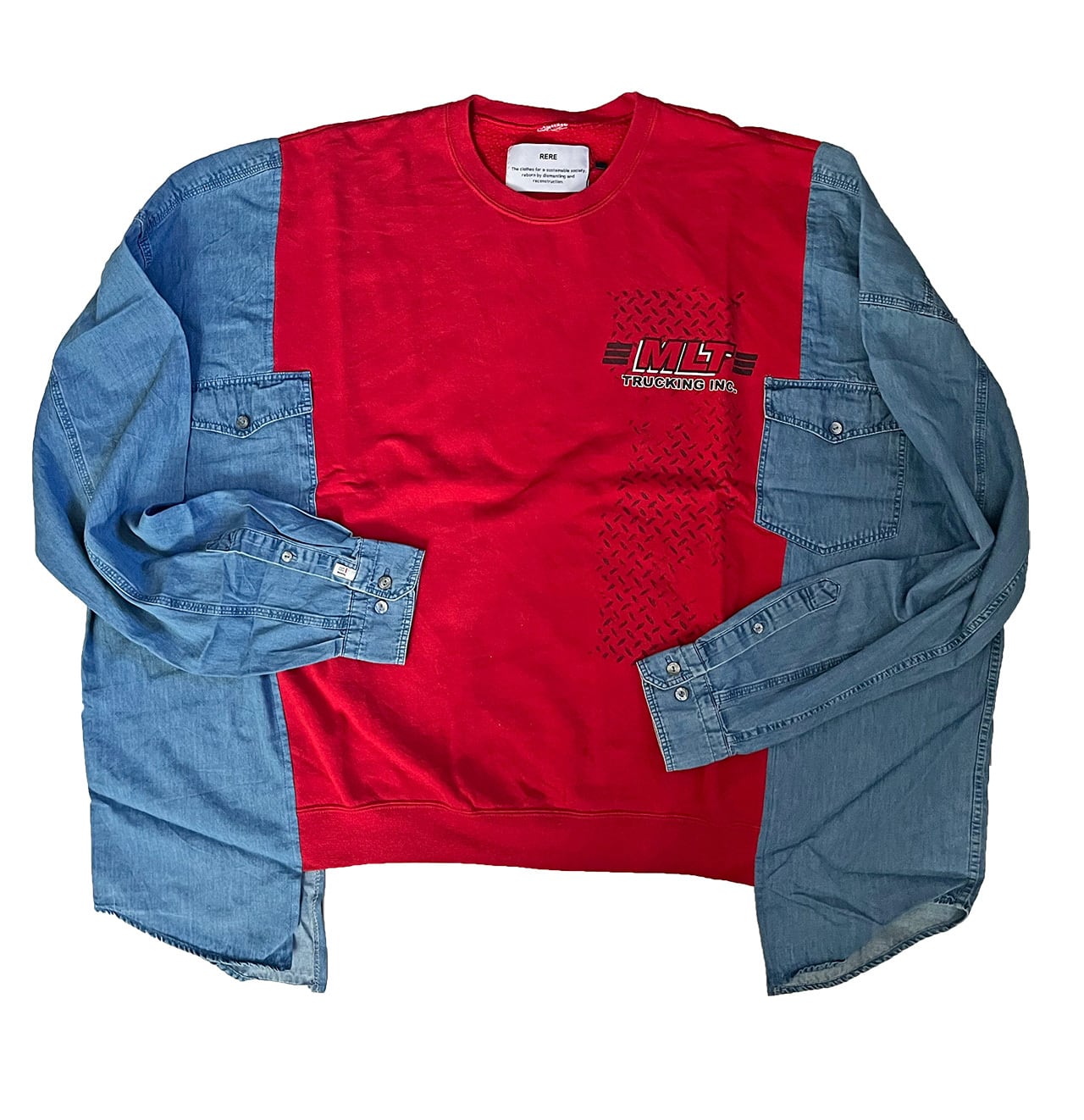 リメイク スウェット x デニムシャツ ワイドプルオーバー(男女兼用)R-1874B ② エコ サステナビリティ ヴィンテージ 再構築 一点物